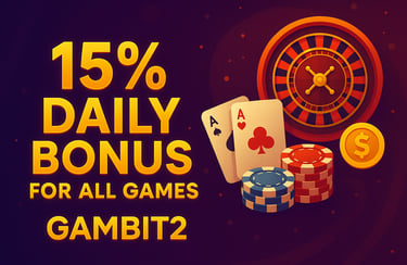 September is the perfect time to level up your gaming. The 15% Daily Bonus for All Games at GAMBIT2 gives you the advantage to play longer, win bigger, and enjoy every session to the fullest. Deposit today, claim your bonus, and make every day a winning day.